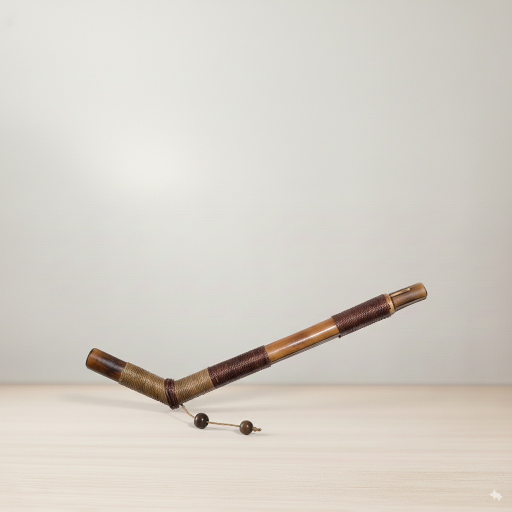 Este tepi de bambú está pensado para soplo asistido (facilitador ↔ receptor).